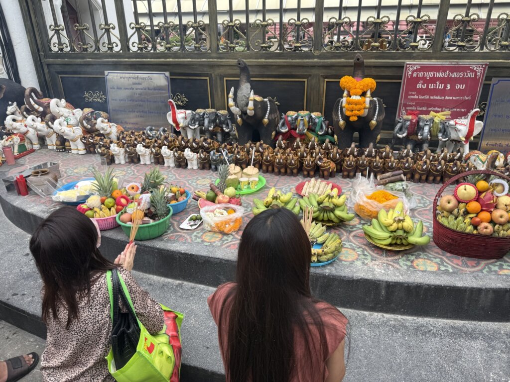 After taking the BTS Skytrain to Chang Erawan station you unfortunately need to still walk 15 minutes on streets with high traffic. The entrance fee is rather high with 500 Baht, but the three-headed elephant and the museum within are really impressive. You can climb up on highly decorated stairs to the heaven of Buddhists which is thought to be on Mount Meru, but is here in the belly of a giant elephant.