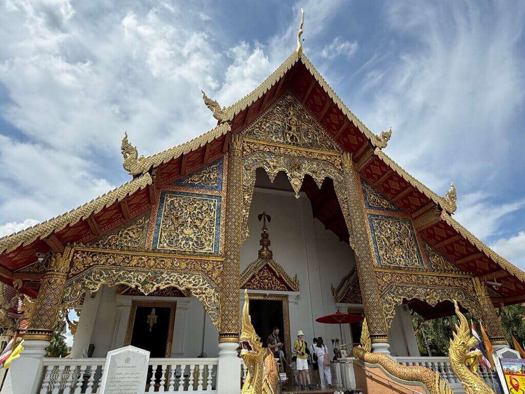 The temple grounds themselves are a peaceful retreat, adorned with well-maintained gardens and ancient chedis (stupas) that add to the site’s contemplative atmosphere. Many of these chedis are built in the distinctive Lanna style, with bell-shaped bases and intricate stucco work, reflecting influences from neighbouring Burmese and Tai cultures. It is also common to witness monks in saffron robes performing their daily rituals, which adds a deeply authentic dimension to the visitor experience. Photography enthusiasts often find delight in capturing the interplay of light and shadow on the temple’s detailed decorations throughout the day.