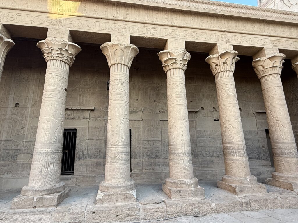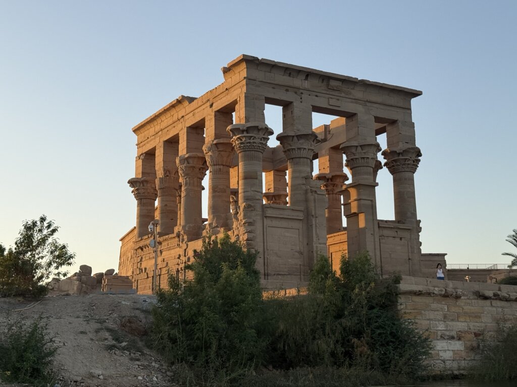 Today, visitors reach the temple by a short boat ride, gliding over waters that shimmer beneath the Nubian sun. On Agilkia Island, travellers can explore the complex’s courtyards, shrines to Hathor and Imhotep, and the famous Kiosk of Trajan, whose elegant columns rise dramatically against the sky. By day, the sunlight illuminates the intricate reliefs; by night, the Sound and Light Show transforms the sanctuary into a spectacle of story and illumination. Standing among these ancient stones, one senses the enduring pulse of Egypt’s spiritual heart – a union of architecture, devotion, and nature that continues to captivate all who come to its shores.