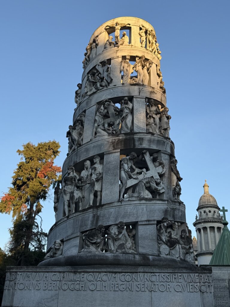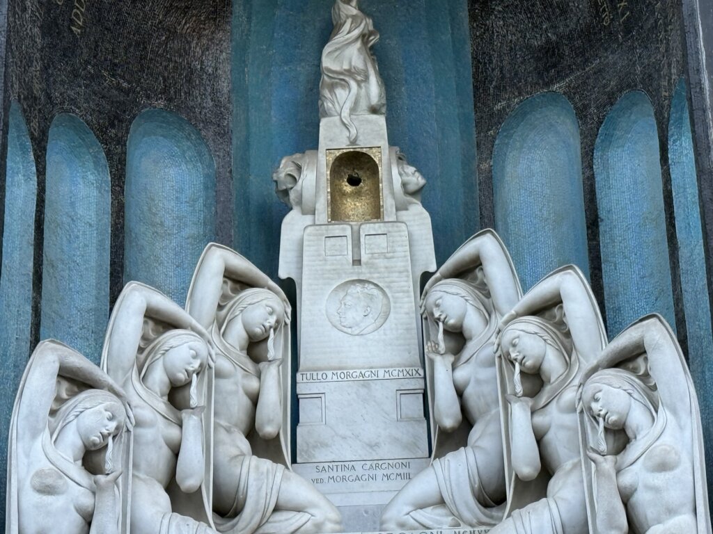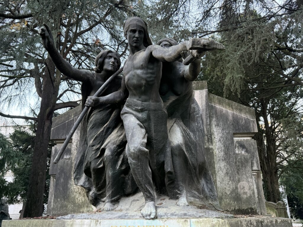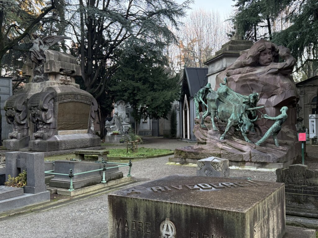 Walking through the sprawling grounds, one encounters names deeply intertwined with Milano’s cultural and industrial heritage. There are monuments to the famous Campari family, their tomb an extraordinary marble depiction of the Last Supper, and memorials dedicated to composers, writers, and business magnates who shaped modern Italy. The cemetery is also home to collective monuments for victims of war and fascism, giving the site a strong historical resonance beyond personal remembrance. Beneath the Famedio’s coffered ceiling rest luminaries such as Alessandro Manzoni, one of Italy’s greatest literary figures, whose presence turned the place into a secular shrine to Milanese identity.