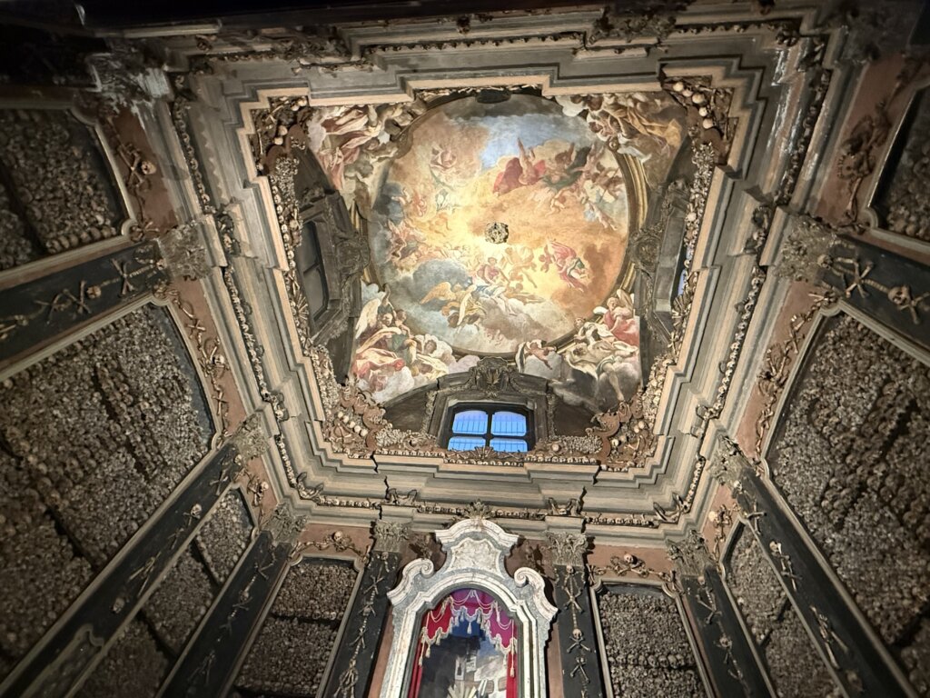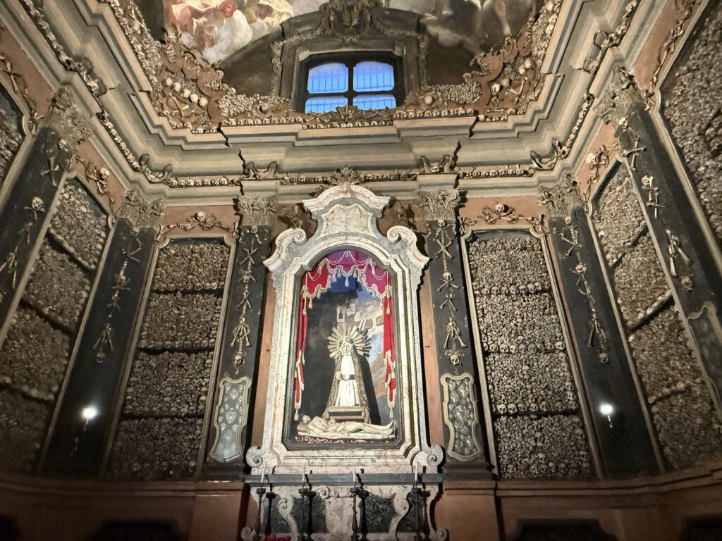 The main church itself is relatively restrained, with side chapels, altars and paintings typical of Lombard Baroque taste, giving little hint of what lies in the adjoining rooms. Light filters through high windows onto chapels dedicated to various saints, and there is a sense that this was intended as a working parish and confraternity church rather than a showpiece for grand aristocratic tombs. The real draw for most visitors, though, is the small door that leads from this conventional sacred space into the ossuary, where the atmosphere changes immediately and the building’s peculiar fame begins to make sense.